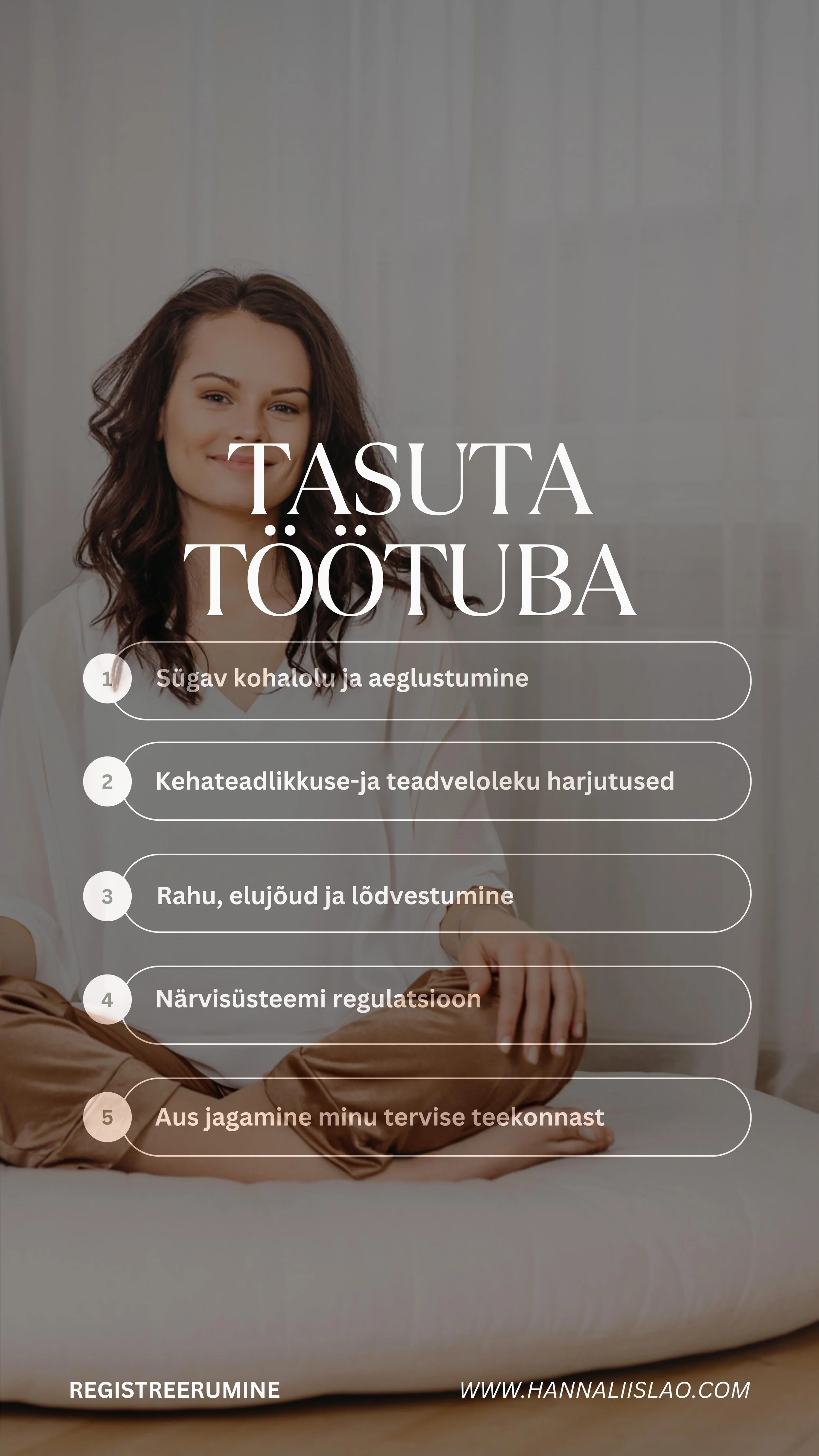Minule südamelähedased teemad puudutavad kohalolu ja kehateadlikkust, närvisüsteemi regulatsiooni, stressi ja pinge mustreid ning teadlikku liikumist igapäevaelus. Samuti ka elufilosoofiat ja mõtteviisi üldiselt. Lähenen neile teemadele praktiliselt, inimlikult ja kehastunult, ühendades oma teadmised, minu enda ja klientide kogemused.